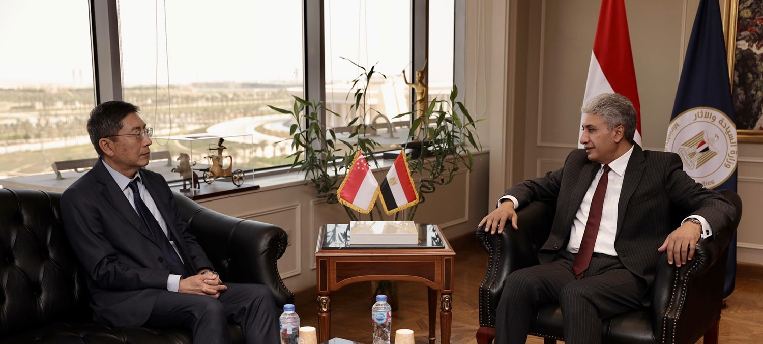 The Egyptian Minister of Tourism and Antiquities Sherif Fathy met with Singapore’s Ambassador to Egypt Dominic Goh and the accompanying delegation to probe fostering cooperation in the tourism sector.