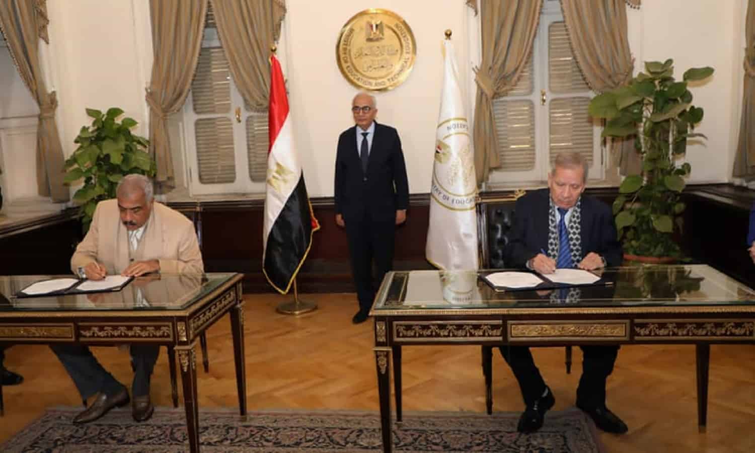 The protocol was signed by Mohamed Megahed, Deputy Minister of Education for Technical Education, and Hesham Talaat Moustafa, CEO and Managing Director of TMG Group.