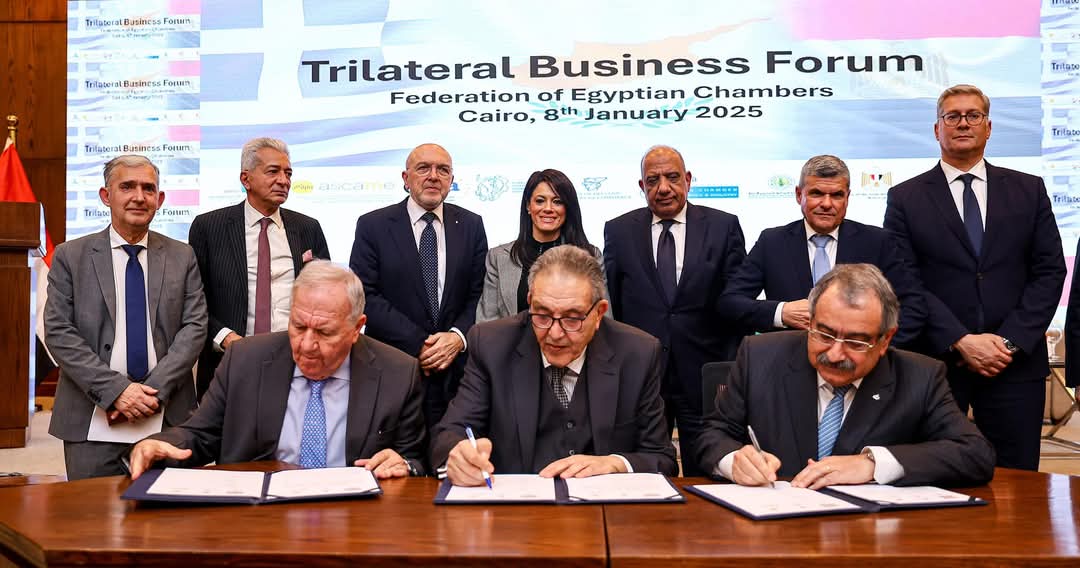 Updated 1/12/2025 10:08:00 AMRania Al-Mashat, Minister of Planning, Economic Development, and International Cooperation, witnessed the signing of a cooperation protocol between the Egyptian, Greek, and Cypriot Chambers Federation to establish a joint business council between the three countries.