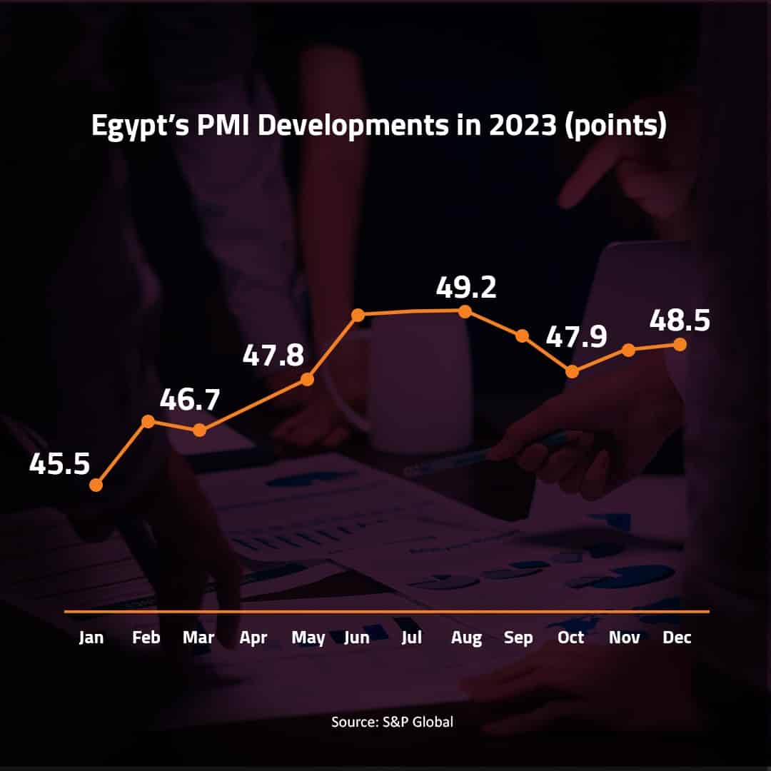 Egypt’s non-oil private sector conditions remained weak in December due to slowed down demand that led to sharper decline in activity and new orders, according to the S&P Global Egypt Purchasing Managers’ Index™’s (PMI™) survey.