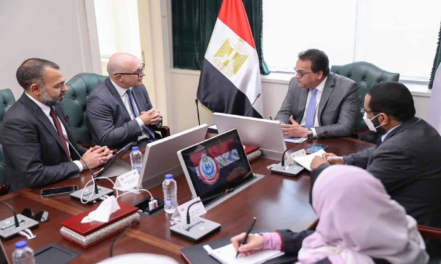 Chairman of Egypt Healthcare Authority and Assistant Minister of Health Ahmed El-Sobky met with a delegation from Huawei, headed by Maben, board member, managing director of public affairs and communication department at Huawei Egypt, to discuss ways to boost cooperation between the two sides.