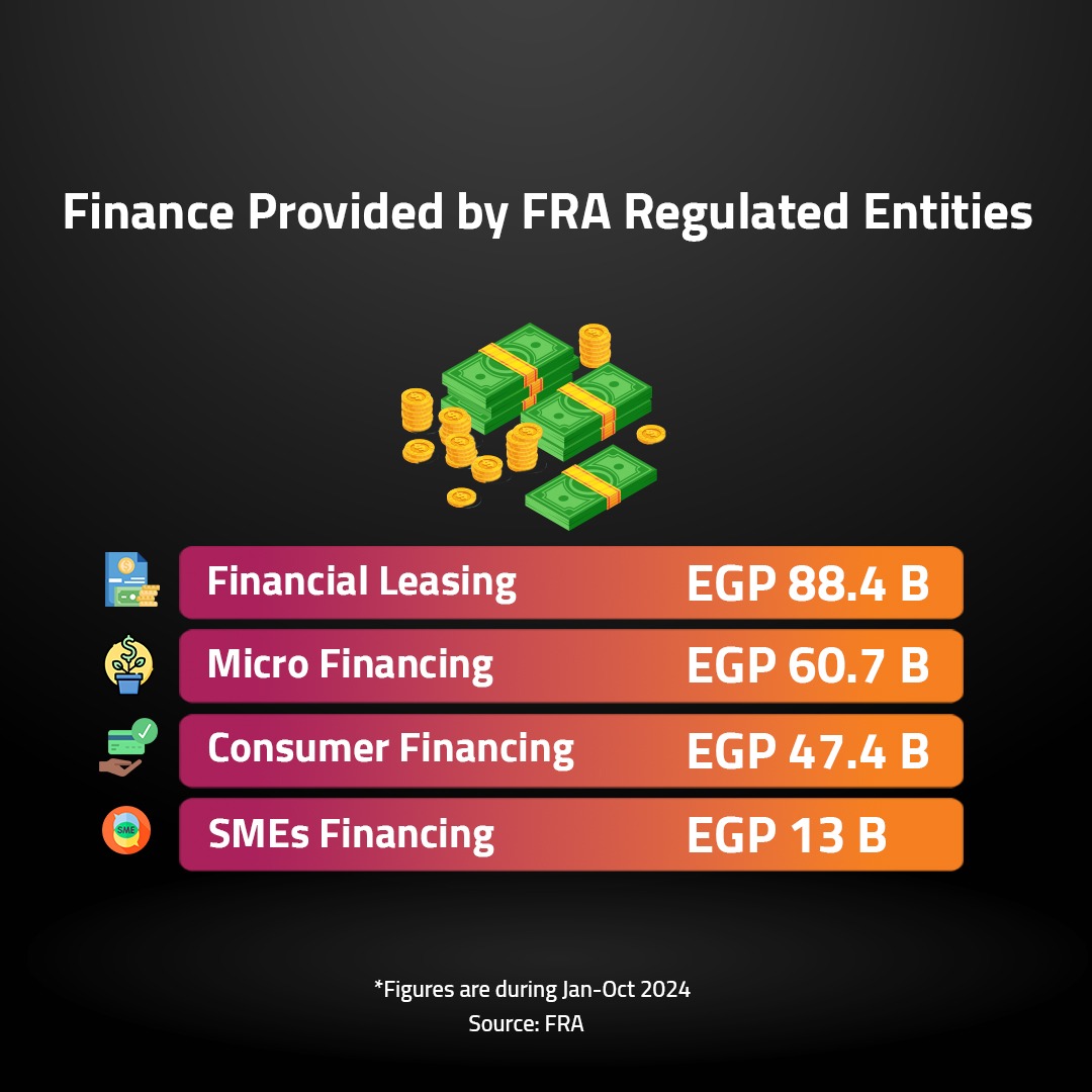 Total financing allocated by the entities subject to the Financial Regulatory Authority’s (FRA) supervision amounted to EGP 718 billion during the first 10 months of 2024.