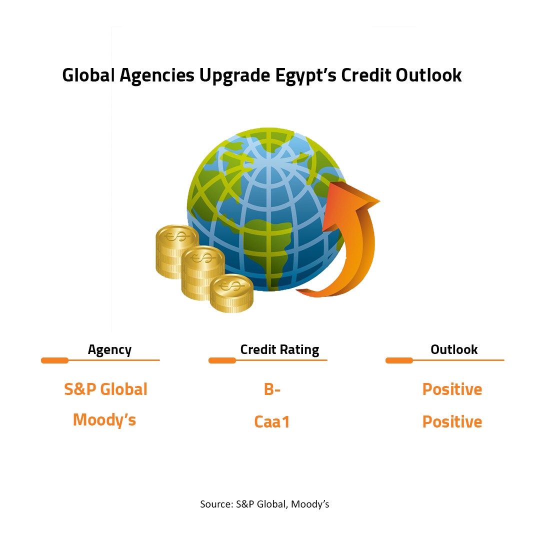 Global ratings giant Moody’s has raise Egypt’s credit outlook from negative to positive following the expanded $8 billion funding from the International Monetary Fund (IMF).